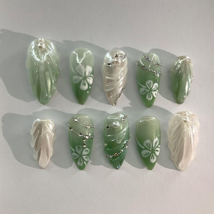 Mint Blossom premium nails are crafted in an elegant Almond shape, perfectly balancing sophistication and modern style. Designed for those who appreciate subtle refinement, these nails provide a graceful silhouette that enhances the natural beauty of your hands. Ideal for both everyday wear and special occasions, Mint Blossom offers durability with a polished finish that complements any look. Elevate your manicure experience with this exquisite set that merges comfort with timeless elegance.
