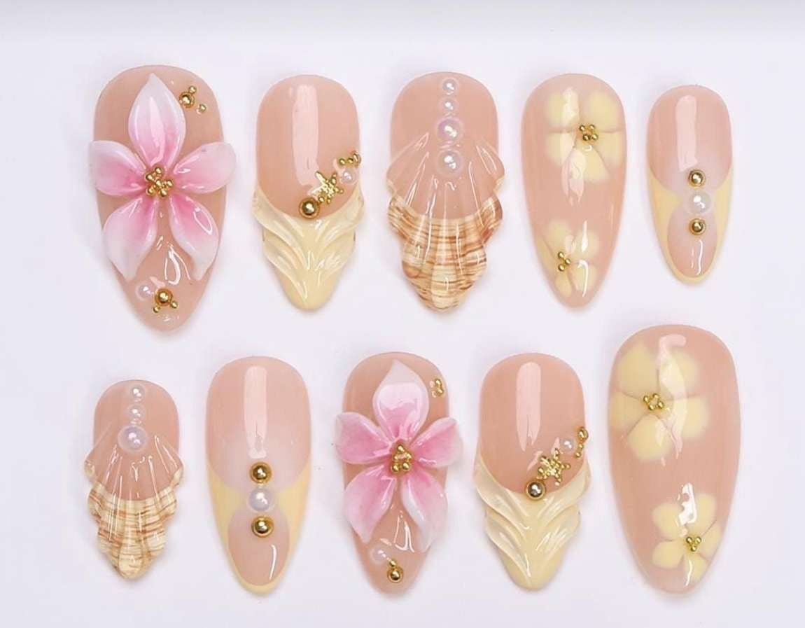 Seaside Glow premium nails offer a refined Almond shape that enhances the natural elegance of your hands. Crafted for a perfect fit and durability, these nails provide a smooth and graceful silhouette ideal for both everyday wear and special occasions. Elevate your style with the subtle yet captivating design of Seaside Glow, blending sophistication with comfort effortlessly.